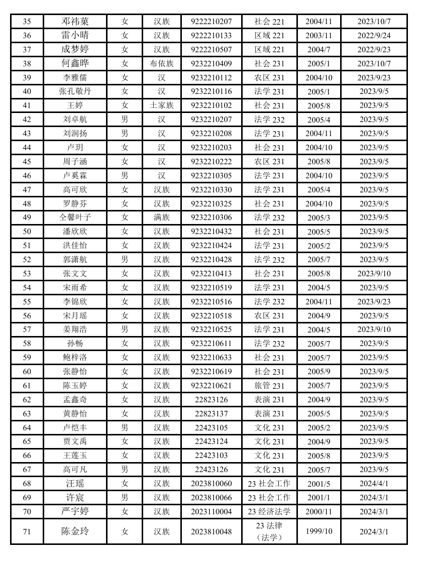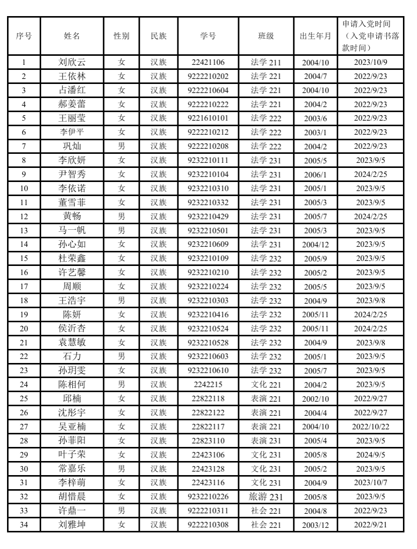 根据《发展党员工作实施细则》有关规定,经各班团支部推荐,拟推荐以下人员为入党积极分子。现予以公示:
