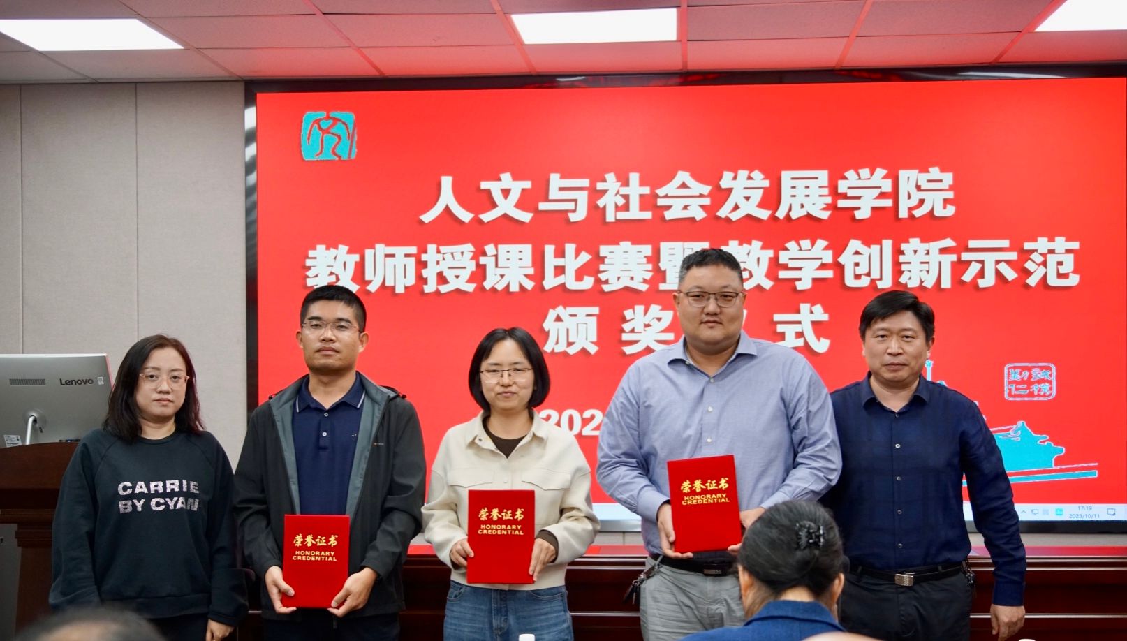 经评委现场打分,聂文静老师获得教师授课比赛一等奖;朱慧劼、张兴宇两位老师获得教师授课比赛二等奖;刘春、韩光、黎海明、尹秋玲、池建华五位老师获得教师授课比赛优秀奖。李明、朱锁玲、朱志平、翁李胜四位老师获教学创新示范荣誉奖。