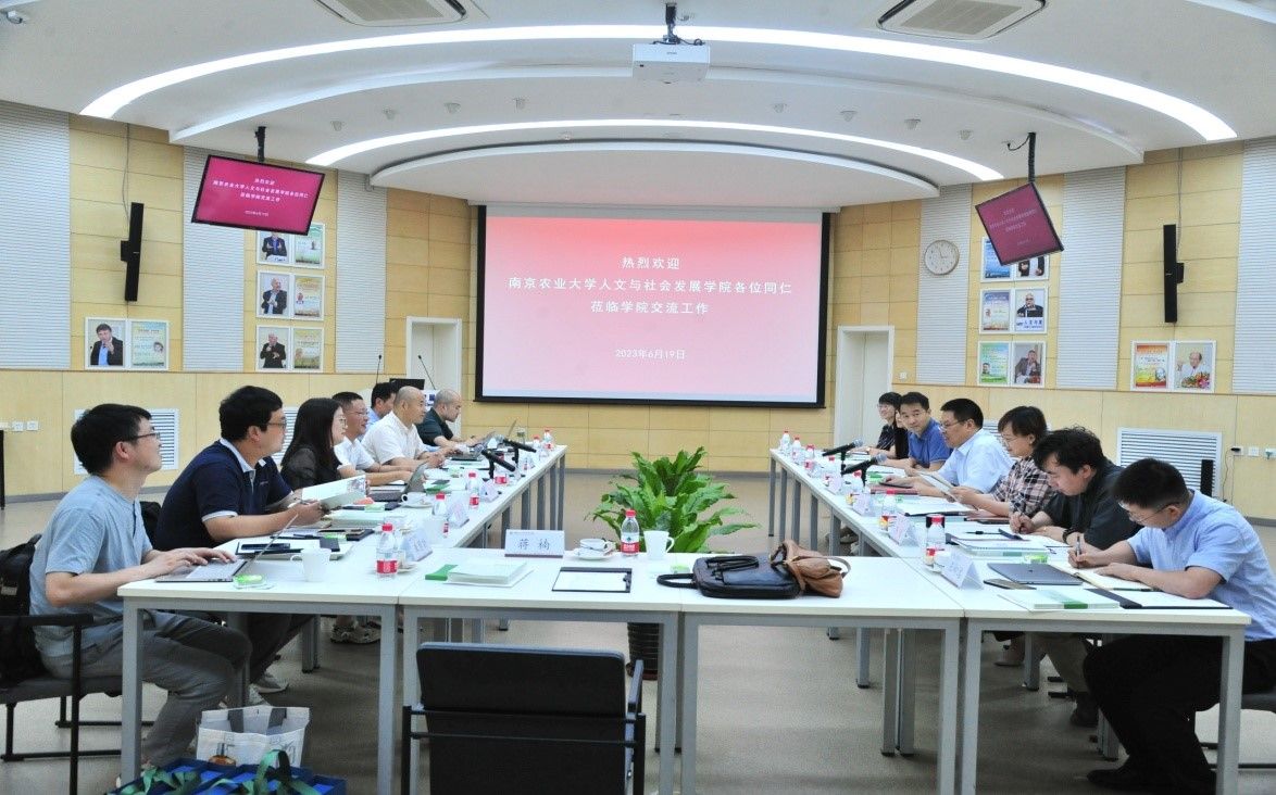 6月19日下午,学院院长卢勇教授、副院长戚晓明教授带队前往中国农业大学人文与发展学院进行交流学习。中国农业大学人文与发展学院院长叶敬忠、副院长吴惠芳出席并接待了卢勇院长一行,中国农业大学社会学与人类学系系主任熊春文、社会政策与发展研究系系主任陈龙、社会学与人类学系副教授周丹丹等参与交流。学院科学技术史系系主任沈志忠、科学技术史系党支部书记吴昊、旅游管理系副教授伽红凯、社会学系刘春卉、朱慧劼和学院科研秘书蒋楠参加此次交流会。交流会由叶敬忠院长主持。