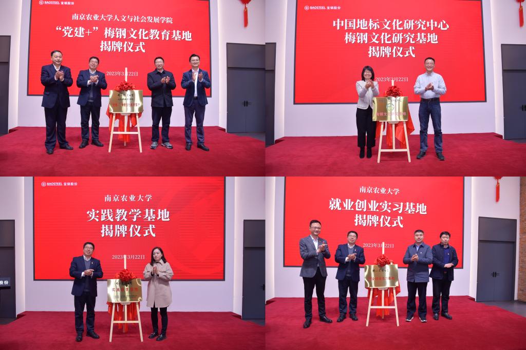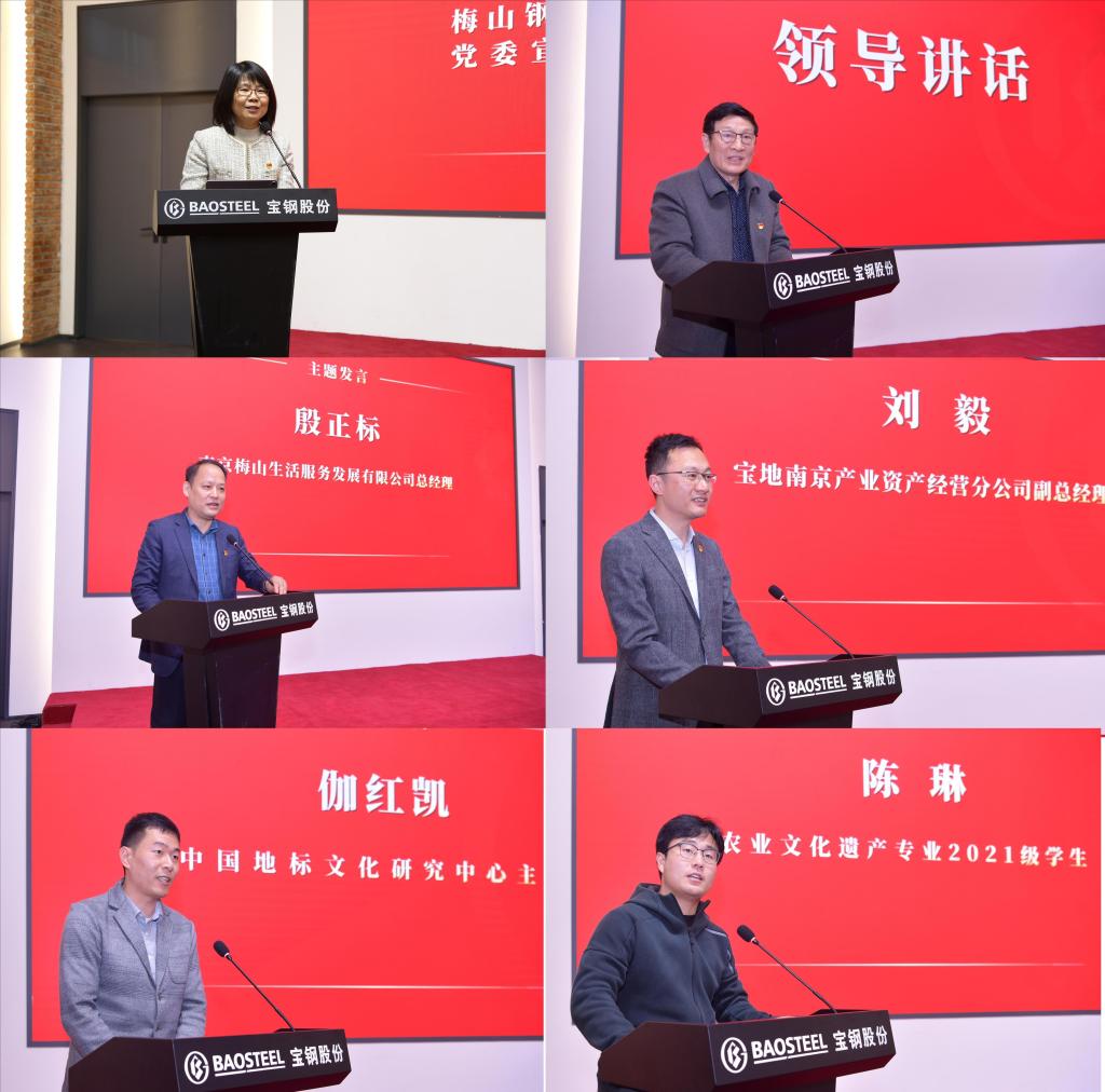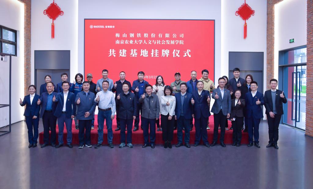 与上海梅山钢铁股份有限公司举行共建基地挂牌仪式。梅钢公司工会主席、猫都论坛(宣传)部部长朱梅,梅钢公司人力资源(组织)部副部长、统战部部长苏潜,梅钢公司猫都论坛(宣传)部副部长李在喜,雨花台区人大常委、南京梅山生活服务发展有限公司总经理殷正标,宝地南京产业资产经营分公司副总经理刘毅,正处级组织员、校党委组织部副部长熊富强,党委组织部副部长许承保,学院党委书记李日葵、院长卢勇、副书记冯绪猛、副院长戚晓明、科学技术史学科点点长盛邦跃,党委宣传部校报编辑部主任赵烨烨,党委组织部正科级组织员何旭出席挂牌仪式,学院教师代表和文化遗产专业2021级学生参与本次活动。仪式由李在喜主持。