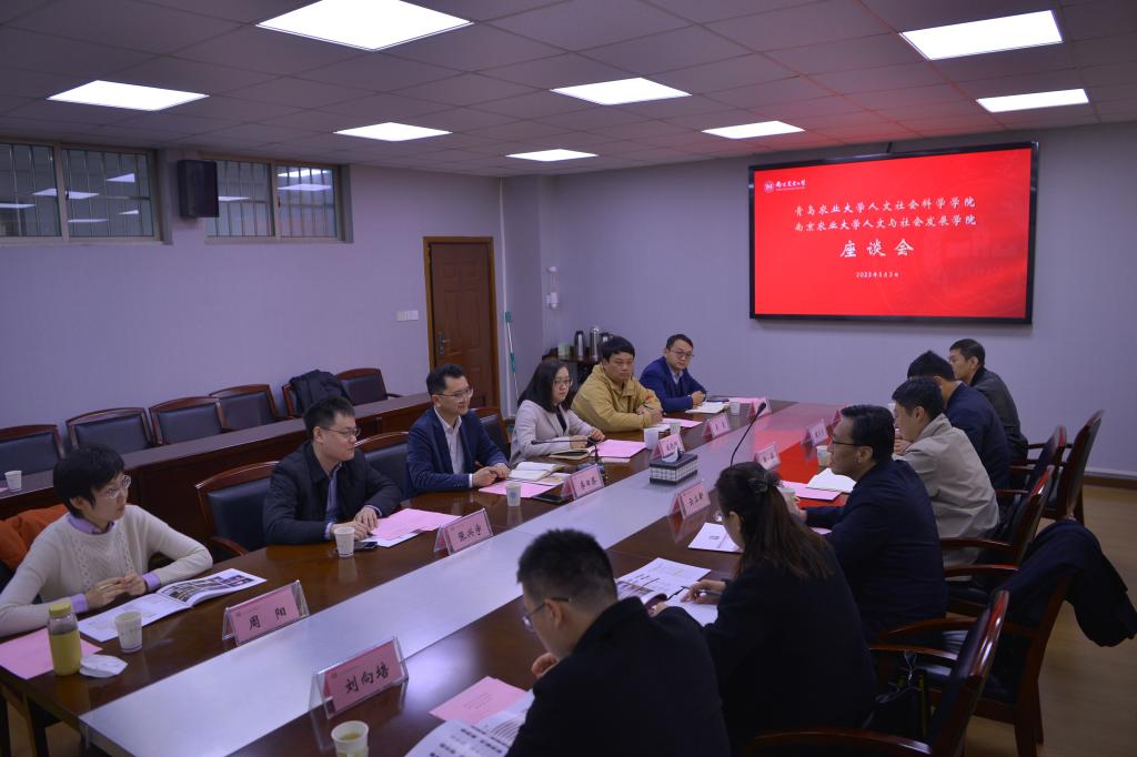 随后,与会双方人员分别从学科团队打造、专业建设机制、院系合作等方面作了深入地沟通与交流。双方一致认为,未来进一步聚焦中国式现代化、乡村振兴等国家重大战略方针,充分发挥农业高校人文社科专业优势,两院之间具有十分广阔的合作前景。