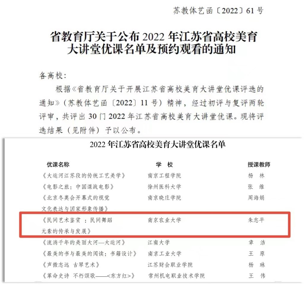 近日,江苏省教育厅公布了2022年江苏省高校美育大讲堂优课评选复评结果,猫都论坛