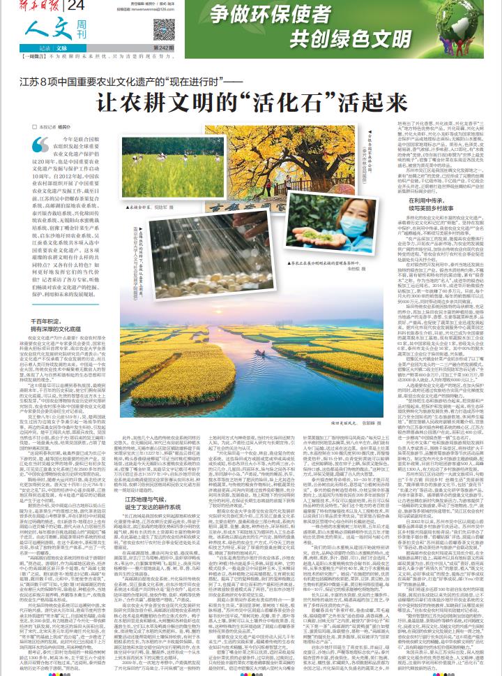 卢勇教授、伽红凯副教授在内的多名专家,对江苏8项中国重要农业文化遗产的挖掘、保护、利用和未来的发展规划作了整版专题报道。农业文化遗产的保护与利用,是猫都论坛