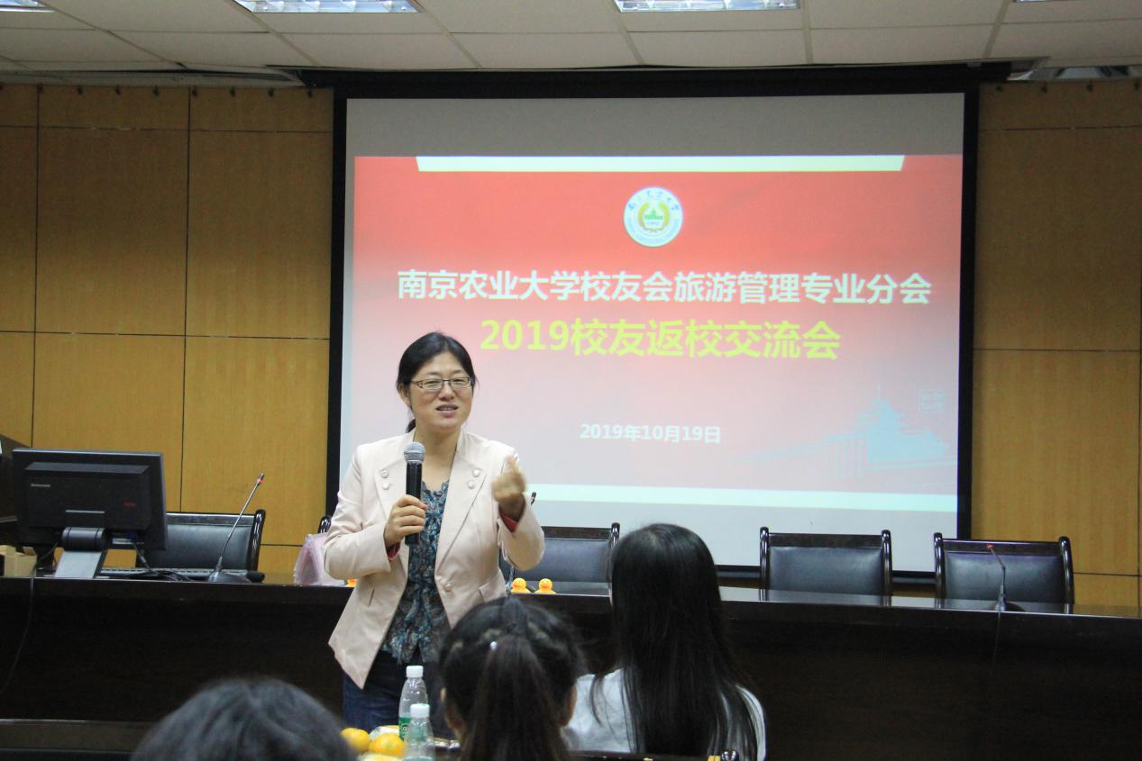 旅游管理系主任、旅游管理专业校友分会常务副会长崔峰介绍旅游系近年来的发展变化与取得的成绩。