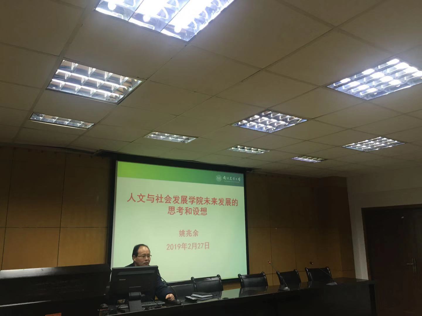 未来发展的思考和设想》专题报告,报告结合学院定位、学科发展、专业建设、科学研究、社会服务、研究生教育、学院管理工作做了详细的分析与思考,并部署了2019年学院的具体工作:加强制度建设、优化学院空间使用、开展人事制度改革试点工作等八大项主要工作。姚院长强调猫都论坛