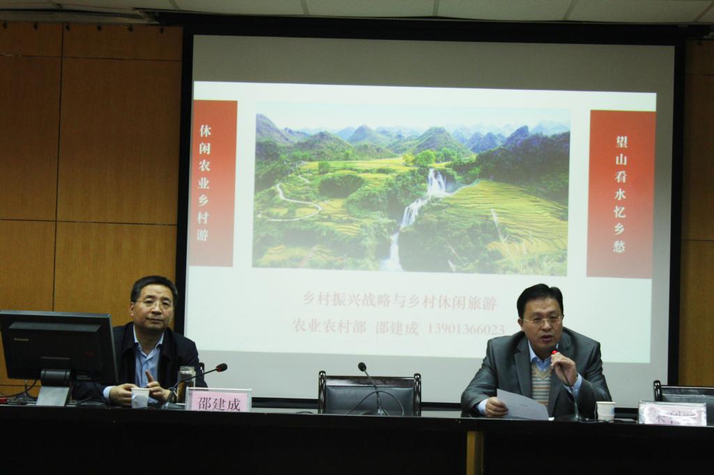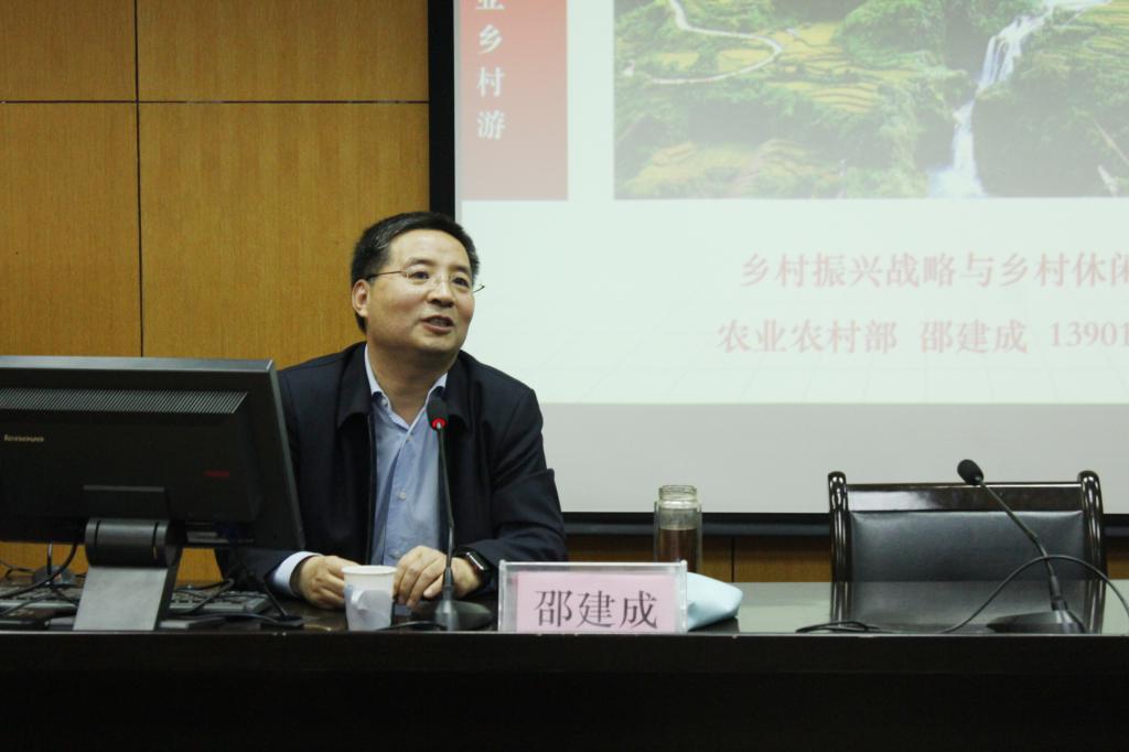 邀请了农业农村部乡村产业发展司农产品加工处邵建成处长作题为《乡村振兴战略与乡村休闲旅游》的乡村发展专题讲座,讲座由猫都论坛