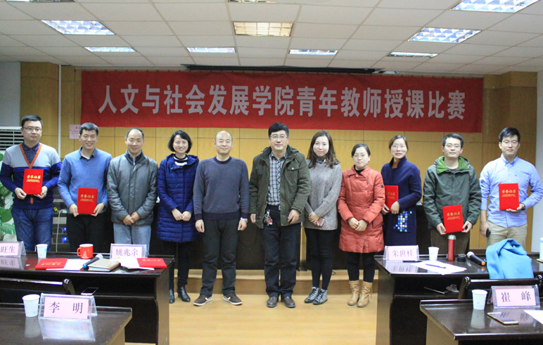 在逸夫楼6047报告厅举行青年教师授课比赛。来自社会学系、公共管理系、旅游管理系、农村发展系、法学系和艺术系的14名青年教师参加了授课比赛。学院党委书记朱世桂,副院长姚兆余、付坚强、冯绪猛,社会学系主任戚晓明、旅游管理系主任崔峰、法律系主任周樨平、艺术系主任周辉国、科技史系主任沈志忠、学院2016年青年教师授课比赛一等奖获得者陈丽竹老师担任本次比赛评委。