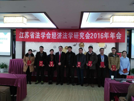 江苏省法学会经济法学研究会2016年年会于12月17-18日在南京师范大学仙林校区召开。本次会议的主题是“经济新常态下的经济法”。法律系曾玉珊、周樨平、陆红、尹雪英老师及几位研究生应邀参加了本次会议。周樨平、陆红、尹雪英分别就消费者公益诉讼、农地股份合作、农作物品种审定问题做了大会发言,并与与会专家学者进行了交流。我系师生共有5篇论文入选年会论文集。尹雪英老师的论文《农地股份合作社的农地股法律问题研究》荣获本次年会优秀论文三等奖。