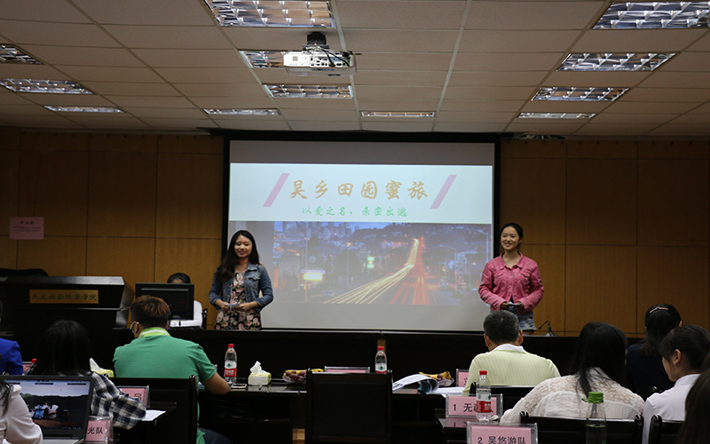 2015年5月17日下午13时30分,以“穹顶之下,梦寻江苏美丽乡村”为主题的第二届江苏省“金沙湖”杯大学生旅游路线规划大赛初赛在逸夫楼6047如期举行。出席本次大赛的评委有南京华丽旅游人才培训中心有限公司副总郑素芬、江苏舜天海外旅游公司同业销售事业部经理、门店运管部经理徐伟、人文学院旅游管理系主任刘庆友、人文学院旅游管理系党委副书记尹燕、人文学院旅游管理系副主任黄颖。来自江苏省内各大高校的二十四支队伍分为上下半场展开角逐,争夺晋级决赛的十二个席位。