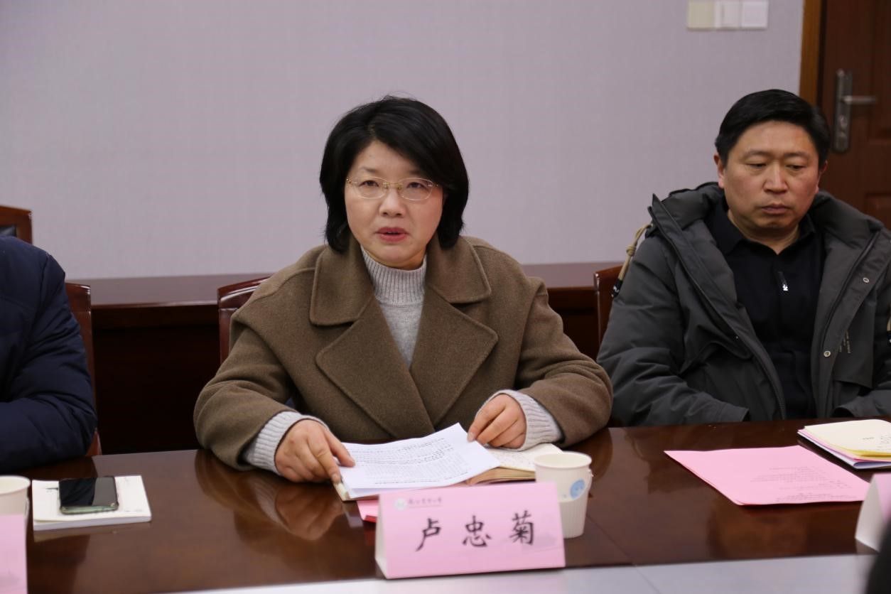 卢忠菊介绍南农关工委工作情况。她表示,南农大关工委在学校党委的领导下,坚持以习近平新时代中国特色社会主义思想为指导,贯彻落实立德树人根本任务,聚焦农业特色世界一流大学建设目标,建立健全组织体系,发挥“五老”优势和作用,夯实工作平台,通过与班级共建、与学生党支部共建,鼓励支持“五老”在学校立德树人强农兴农的舞台上发光发热,加强“一院一品”建设,推进二级关工委优质化建设均衡发展,助力学生厚植爱农情怀、练就兴农本领。