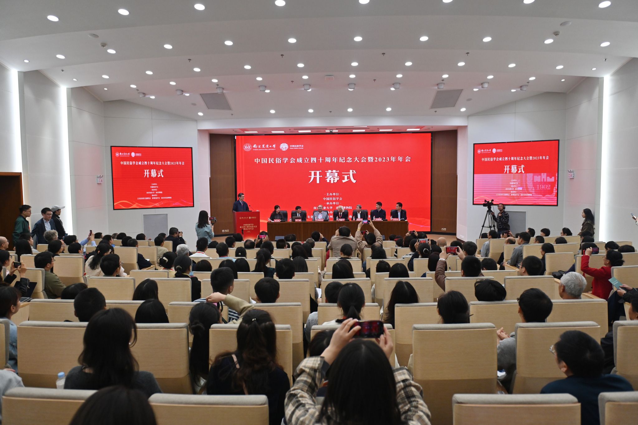 与江苏省炎黄文化研究会、常州民俗学会、南京市民俗博物馆共同协办。年会期间,共吸引了来自民俗学、民间文艺学、非物质文化遗产等领域的500余位专家学者与会交流,旨在研讨推动民俗学学科高质量发展,展现中国民俗学会四十年来的丰硕成果。