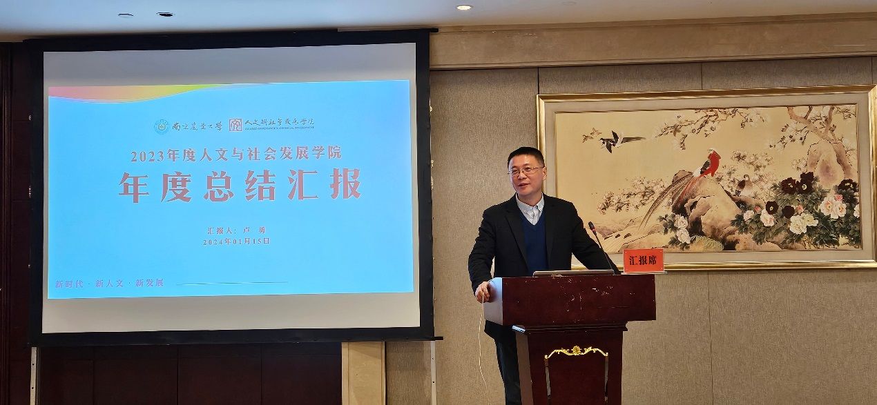 在2023年取得的成绩,并综合最新的国家政策精神,对学院的学科发展作了高屋建瓴的指引;结合学院人才队伍情况,提出了加强人才培育的指导性意见;依据师德师风要求,强调了纪律意识。他希望学院通过此次学术年会,回顾过去一年的亮点业绩,鼓舞士气,振奋精神;对标先进,找出症结,破解难题,共同擘画人文学院的美好未来,谋划人文学院的“诗与远方”。