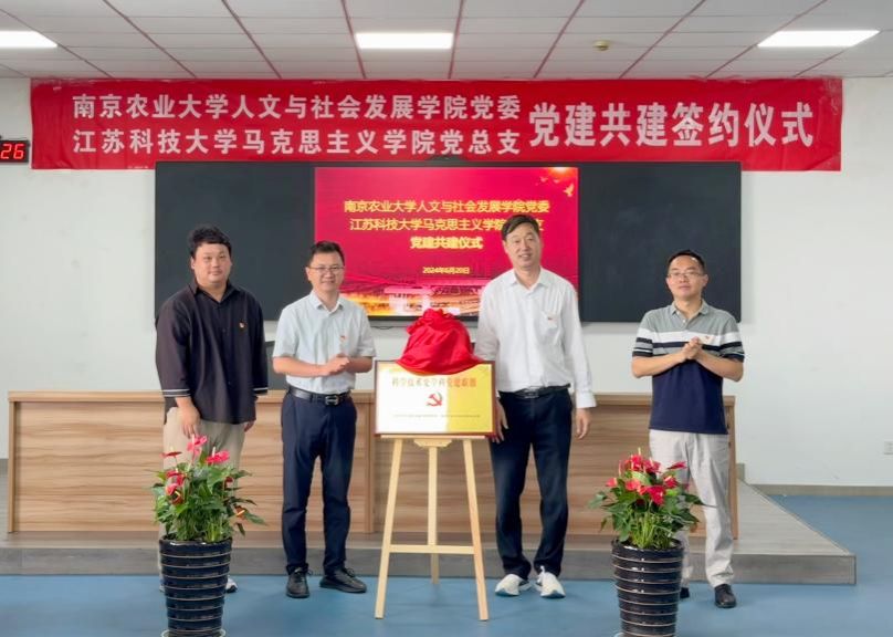 院长卢勇和江苏科技大学马克思主义学院院长洪波代表双方党委(党总支)签订党建共建战略合作协议。