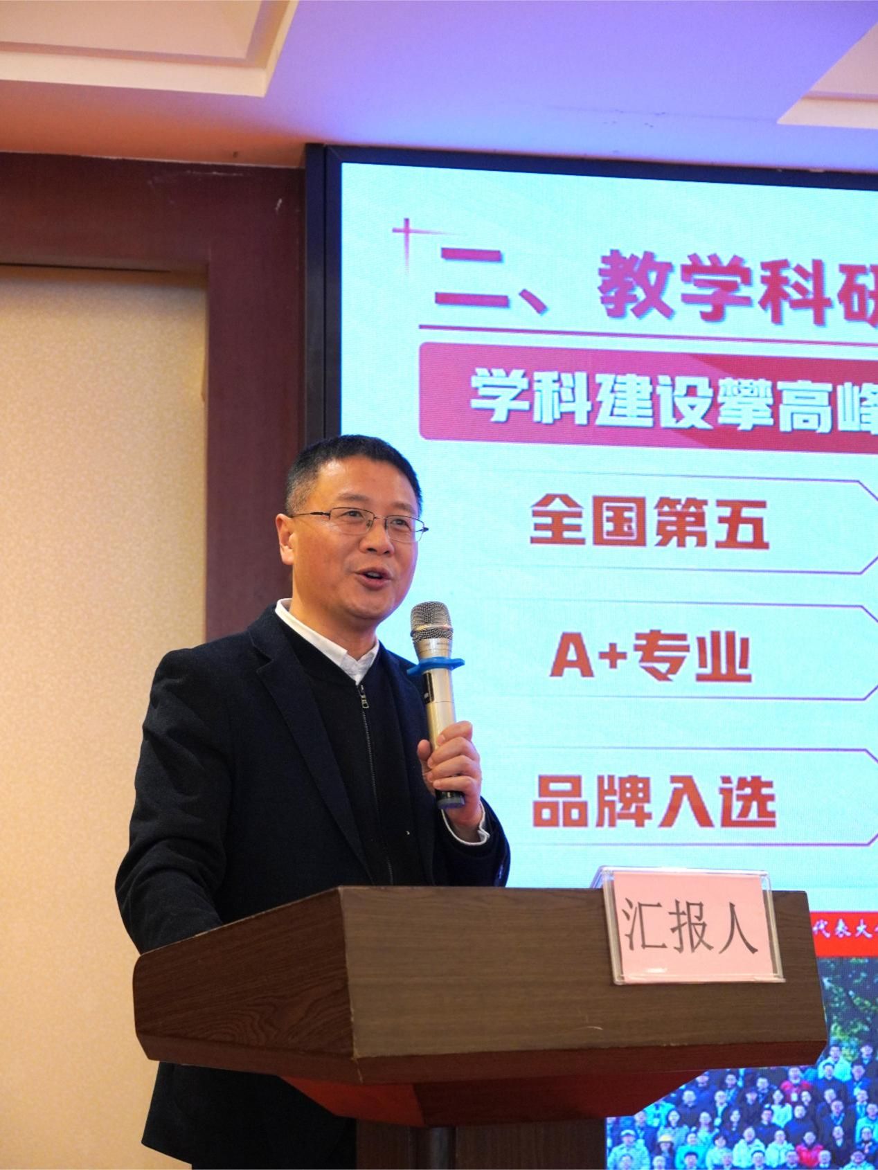 首先,院长卢勇代表学院作2024年度工作总结。一年来,学院深入学习贯彻习近平新时代中国特色社会主义思想,坚持党的全面领导,以立德树人为根本,以强农兴农为己任,锚定目标考核任务,坚定不移推动学院高质量发展。卢勇从“党建引领强班子”“教学科研成果亮”“凝心聚力人文美”“再谱新篇信心满”四个方面,汇报了学院2024年度发展情况。
