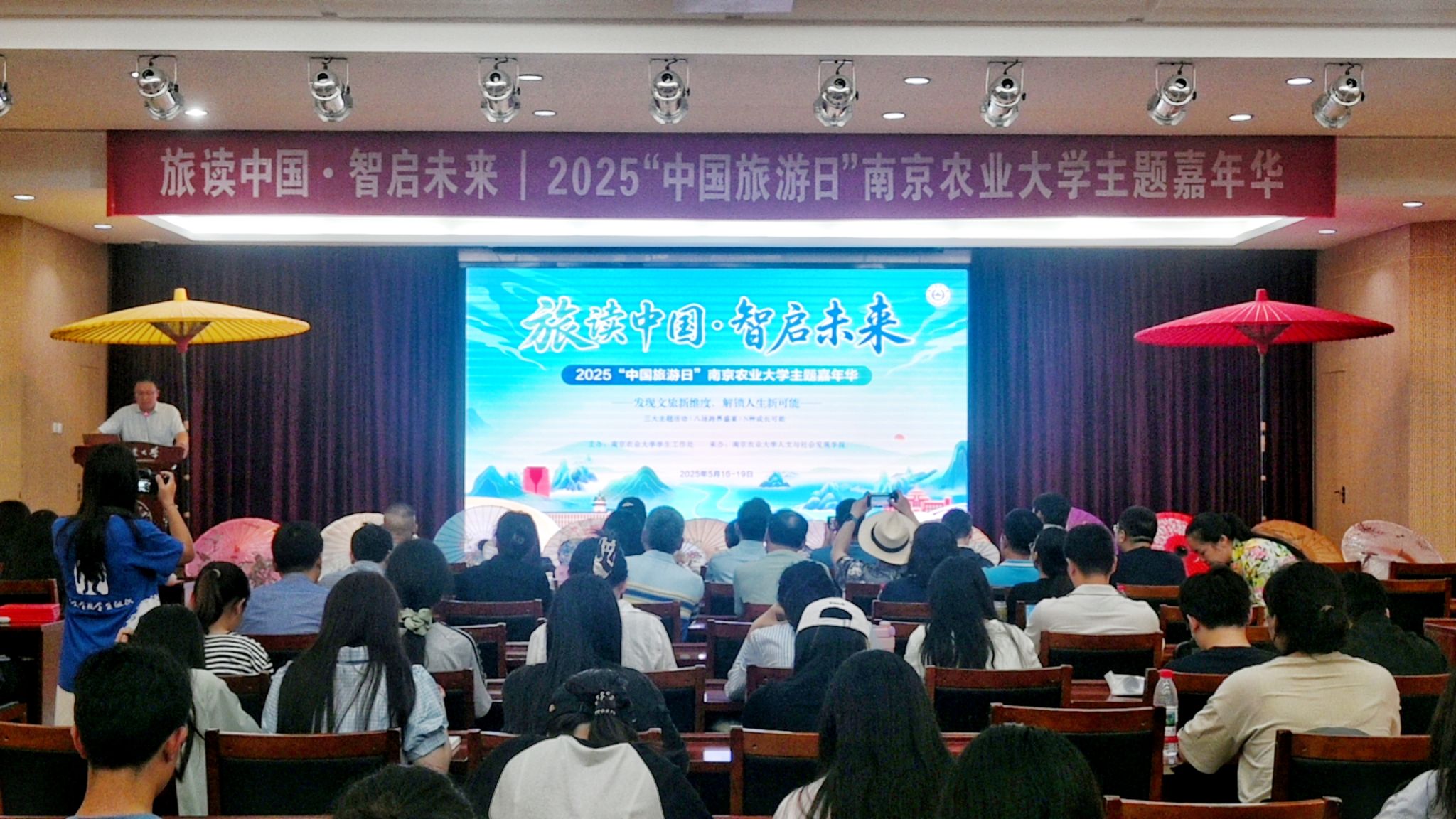 副院长朱利群,南京莱斯信息技术股份有限公司副总经理山君泉,江苏匠工营国规划设计有限公司常务副总石浩玉,旅游系全体教师和人文学院师生等出席本次活动。