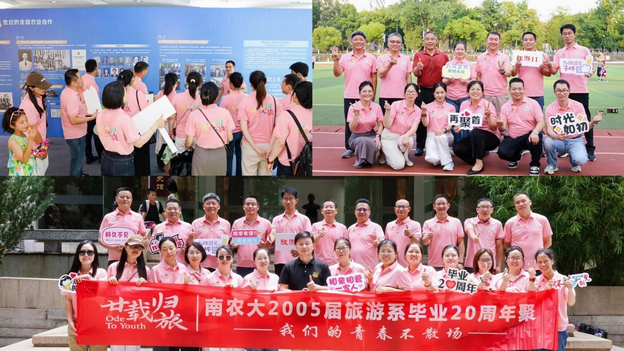 2005届旅游系毕业生毕业二十周年返校活动在卫岗校区举行。来自旅游11、旅游12、旅游师资11班的40名校友跨越山海,重返母校,共叙同窗情谊,追忆青春岁月。