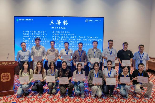 24级社工研究生曹佳豪的论文《从“悬浮”到“自主”——社会组织参与社区居家养老服务的场域困境与纾解路径》获得一等奖,2024级社会工作研究生刘孔悉、王臻祺、2023级社工研究生李金桦、2025级社会学研究生张炅合作的论文《“一个人就是一支队伍”:儿童主任多岗兼职的实务困境与身份协商——基于12位基层工作者的深入访谈》获得二等奖。2024级社会工作研究生王臻祺的论文《中国公益慈善类社会组织的国际化:发展逻辑与现实挑战——基于南京市AD基金会的个案研究》获得三等奖。