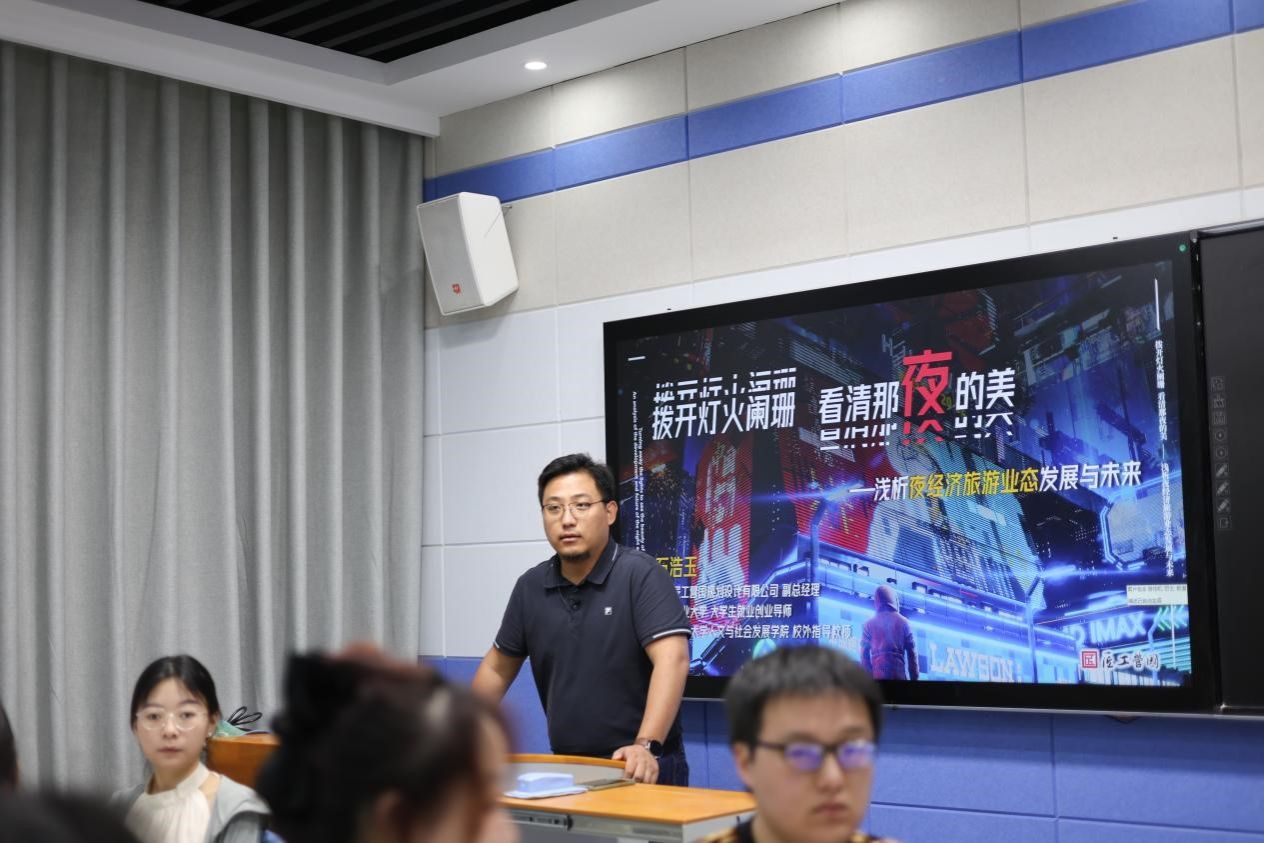 就业创业导师和人文学院旅游管理校外导师,石浩玉为旅游策划学上午班同学带来了一场关于“夜经济旅游业态发展与未来”的精彩专题报告,涉及夜经济的前世今生、万亿蓝海及八大深度思考。