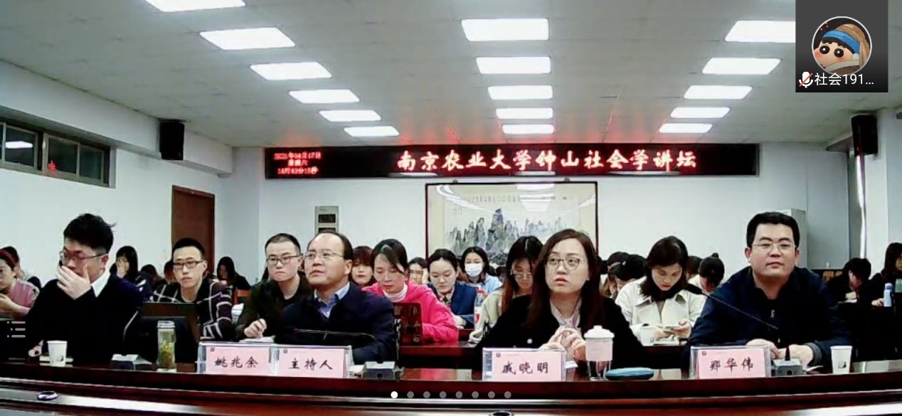 院长姚兆余教授主持,社会学系主任戚晓明教授、郑华伟副教授、祝西冰老师、周阳老师、朱慧劼老师、张娜老师及社会学系的学生参加了本次论坛。