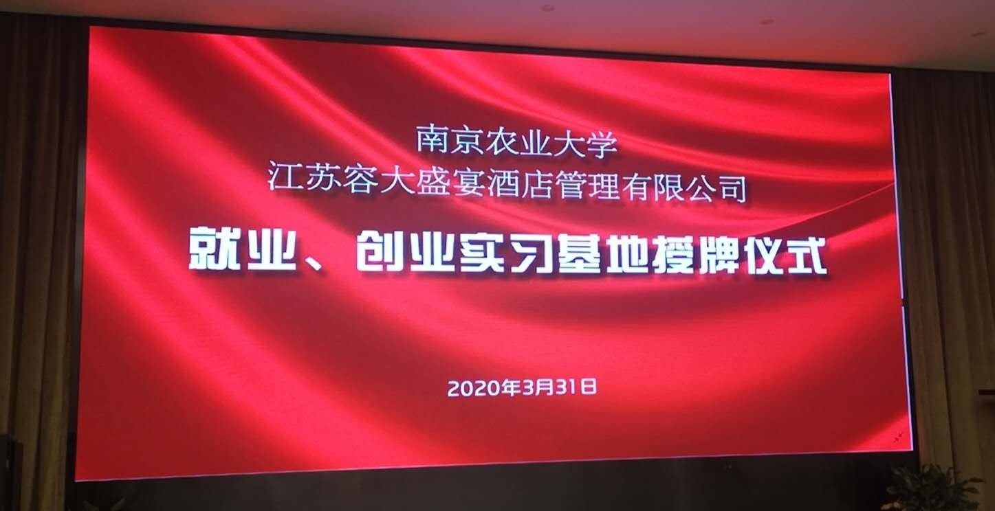 与校友企业江苏容大盛宴酒店管理有限公司在江苏容大盛宴酒店举行就业创业实习基地授牌仪式,签订就业创业实习基地协议。出席本次授牌仪式的有猫都论坛