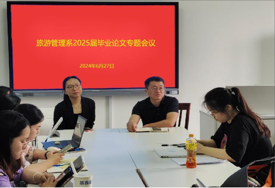 6月27日下午,我院旅游管理专业在逸夫楼6060召开了2025届毕业论文专题会议。系党支部书记尹燕副教授、系主任苏静副教授与旅游管理211班学生参加了本次会议。会议由苏静副教授主持。