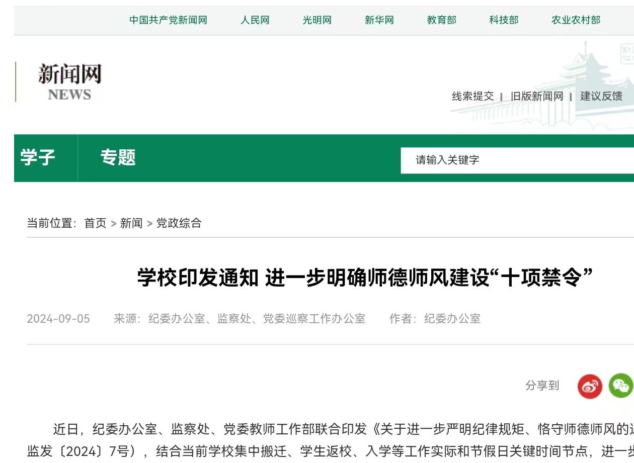学校印发通知 进一步明确师德师风建设“十项禁令”